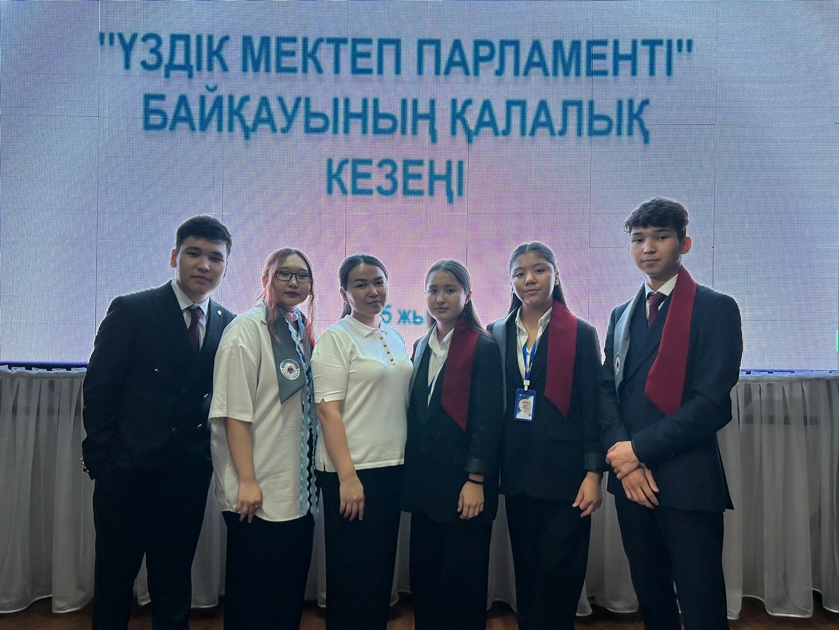 В городском этапе конкурса «Лучший школьный парламент», проведенного в соответствии с письмом Министерства образования и науки Республики Казахстан от 5 января 2025 года №05-1-05/21, приняли участие следующие учащиеся и заняли призовое 3 место: 1) Ушкемпир Аристархен – 10 Б класс; 2) Жумабай Дамира - 9 в класс; 3) Жанайдар Асет – 9 а класс; 4) Махсатулы Мадияр-10 А класс; 5) Бердыкул Алтынай-10 Б класс.